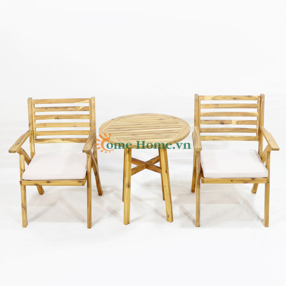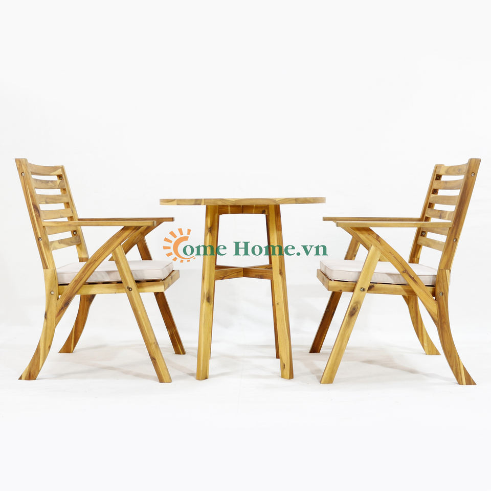 ชุดเก้าอี้บิสโทรสำหรับกลางแจ้งสไตล์มินิมอลไม้กระถินณรงค์ Comehome พร้อมเบาะนุ่มสีขาว