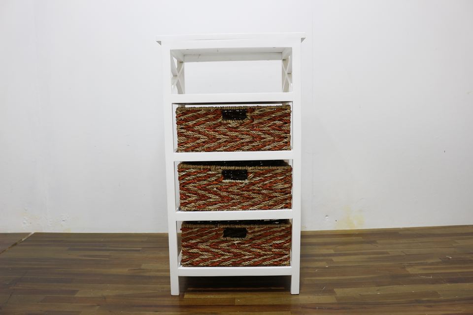 ตู้ไม้4ชั้นสีขาวพร้อมตะกร้าหญ้าทะเล03ใบ