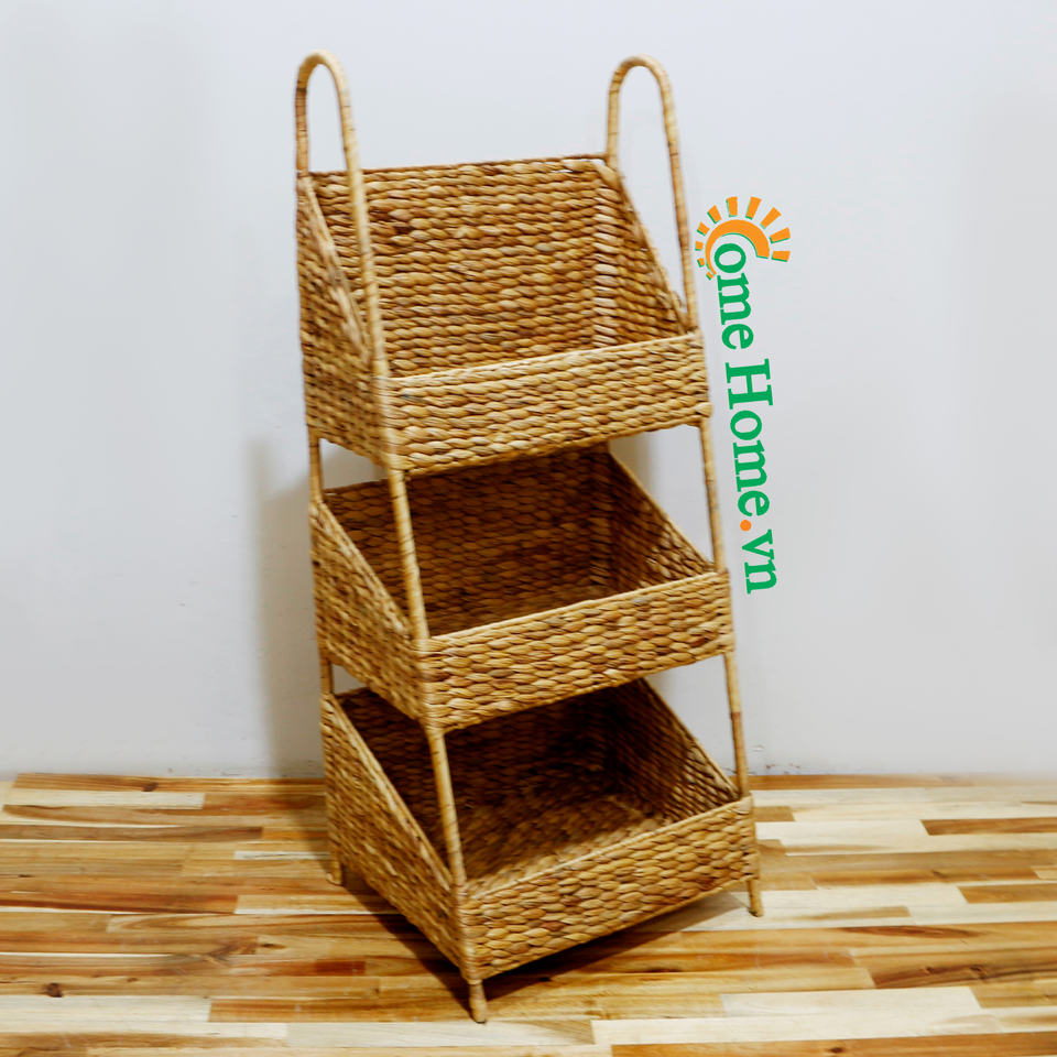 ชั้นเก็บของ3ชั้นขาโลหะพร้อมตะกร้าผักตบชวา3ชั้น
