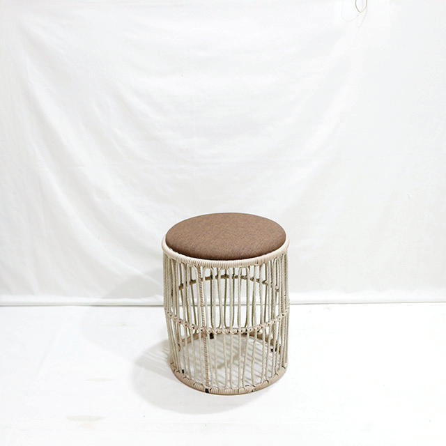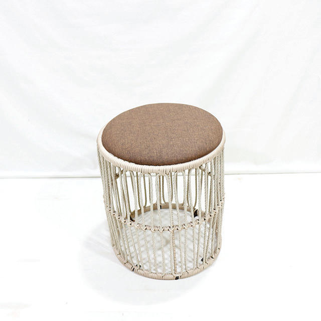 โต๊ะกลม Comehome โครงเหล็ก พลาสติก เชือก ไม้ ทอมือ สีเทา พร้อมเบาะรองนั่ง