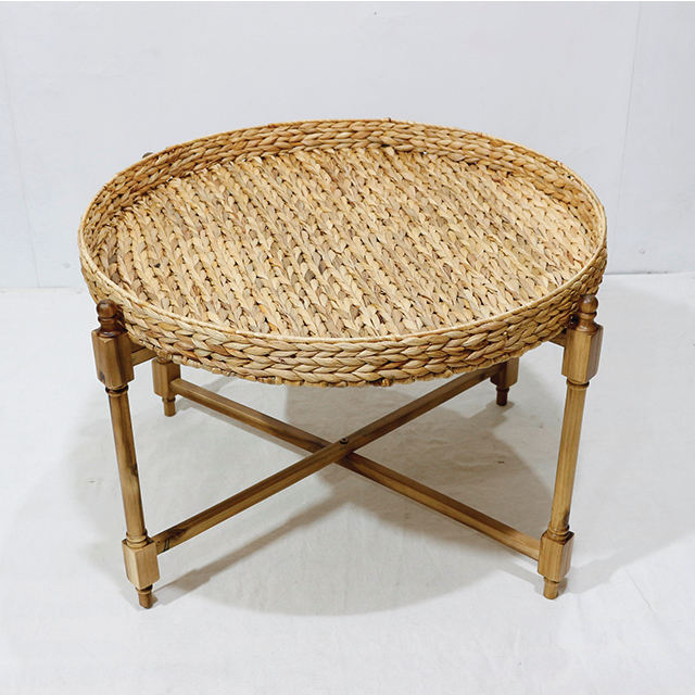 ชื่อผลิตภัณฑ์:โต๊ะกาแฟพร้อมขาไม้และตะกร้าผักตบชวา1ใบ