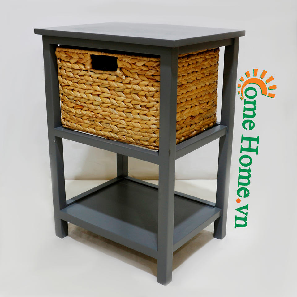 Product name:2 tier wood cabinet in grey color, with 1 water hyacinth basket