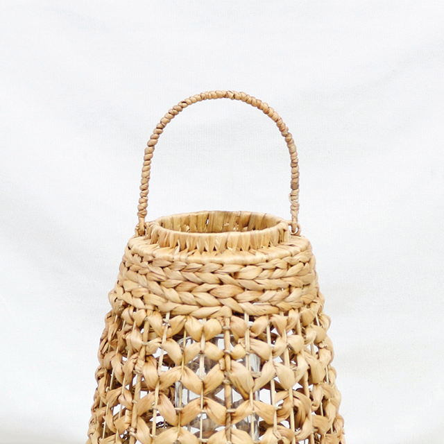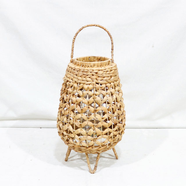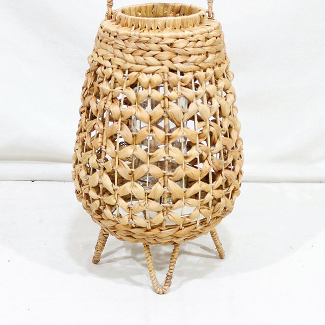 โคมไฟตกแต่งจากผักตบชวา งานถักมือ พร้อมฐานแก้วทรงสามขา