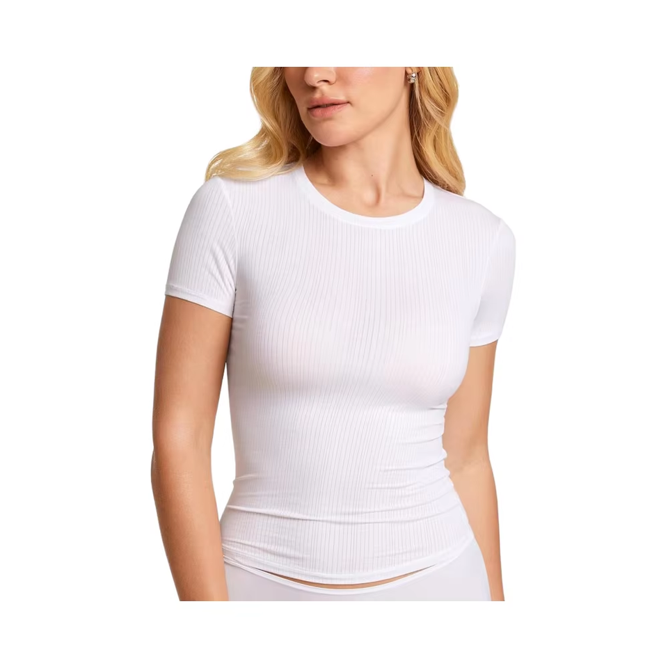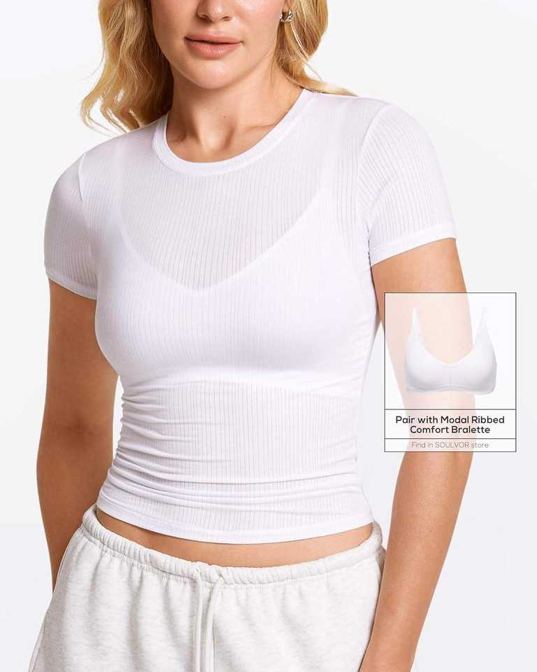 Comfancy เสื้อทีเชิ๊ตผู้หญิง, เสื้อยืดคอกลมแขนสั้นพอดีตัวสำหรับใส่ในฤดูร้อน