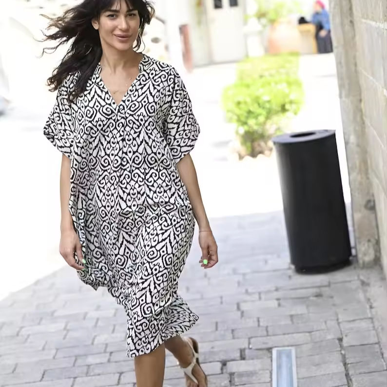 Comfort Fit ผ้าฝ้าย 100% คอวีวาดเชือกเอวครึ่งแขนสีแดงลายบาติกมือบล็อก Kaftan ผลิตภัณฑ์ทําด้วยมือสําหรับสาวๆ