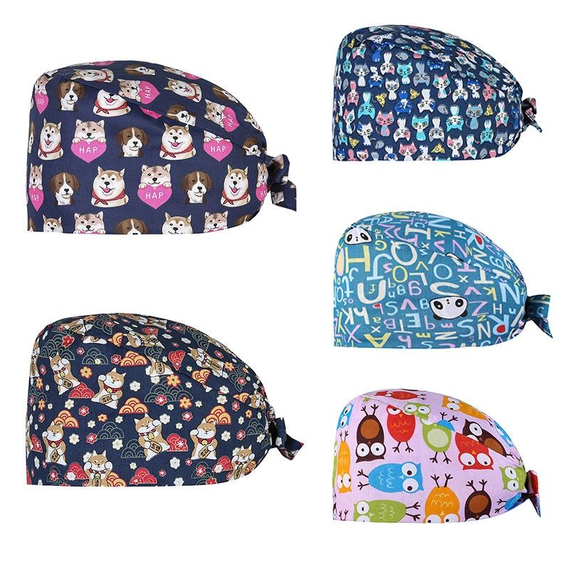 หมวกผ่าตัดสวมใส่สบายพร้อมสายผูกสไตล์พิมพ์ลายและผ้าฝ้ายซับเหงื่อ