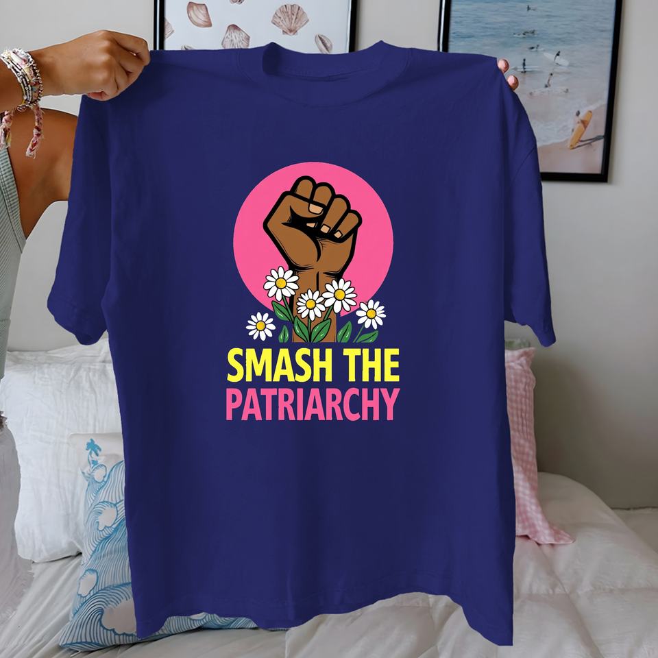 เสื้อยืดสตรีใส่สบายพอดีตัว100% ผ้าฝ้ายแท้สไตล์ลำลองพร้อมลายพิมพ์ดีไซน์ 'กำปั้นชนคนรักชาติ'