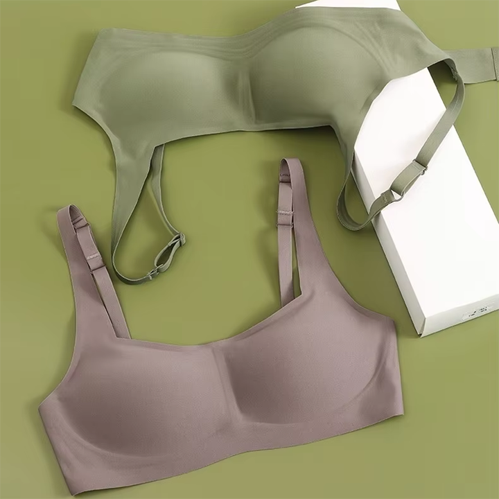 บราไร้โครงแบบเย็บต่อเนื่อง ทรง U-Back นุ่ม ระบายอากาศดี ไร้โครงเหล็ก ใส่ได้ทุกวัน คัพ 3/4 แบบชิ้นเดียว บราเจลลี่ แผ่นรองถอดได้