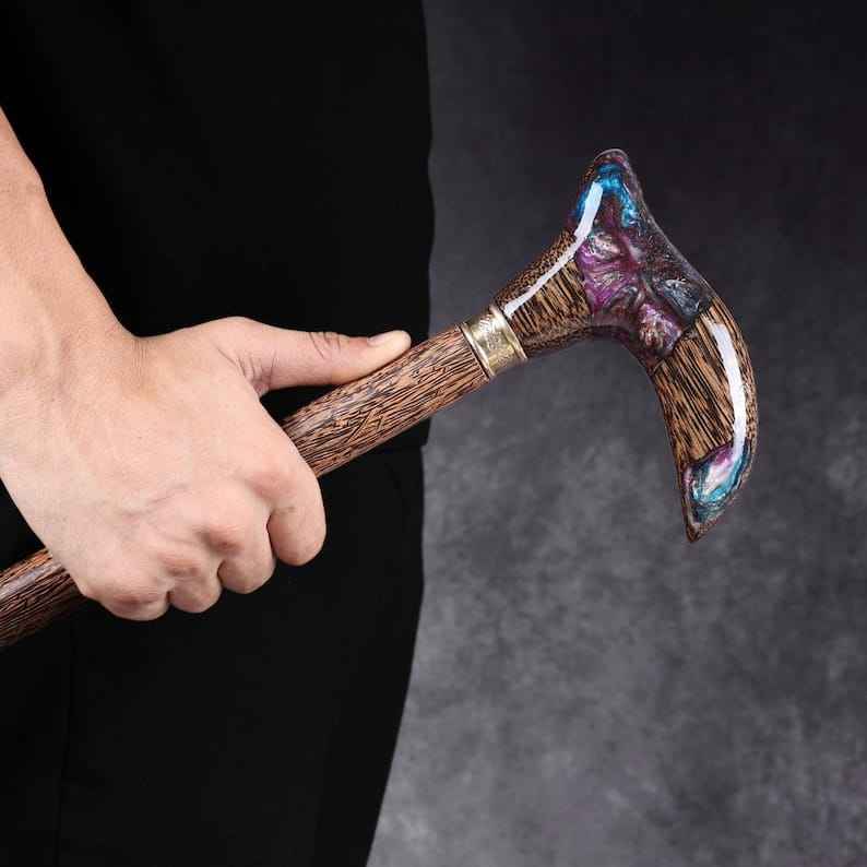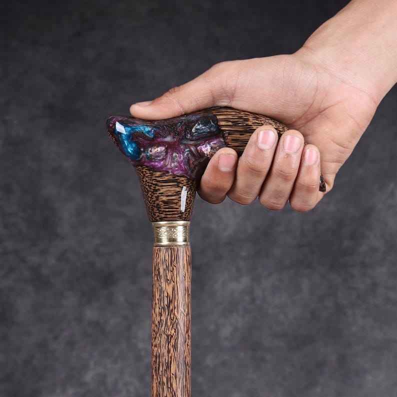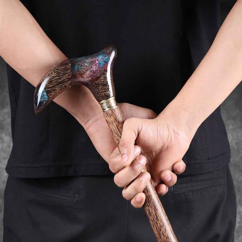 ดีไซน์ที่สะดวกสบายและแข็งแรง รับประกันความปลอดภัยด้วยงานเรซิ่น ไม้เท้าทำจากเรซิ่นและไม้ เหมาะสำหรับการเดินในชีวิตประจำวัน