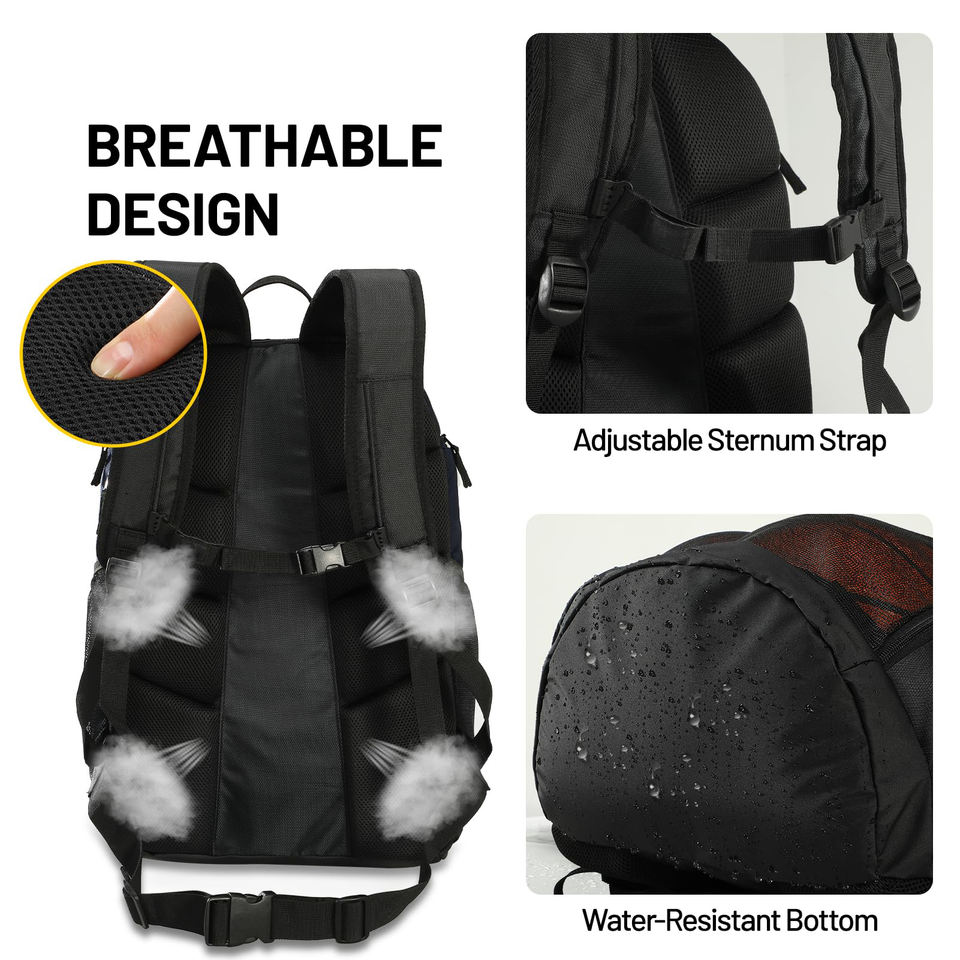 กระเป๋าเป้กีฬาบาสเก็ตบอลที่สะดวกสบาย | กระเป๋าใส่ของมีสายสะพายบุนวมและช่องด้านข้างสำหรับใส่ขวดน้ำหรือเครื่องดื่ม