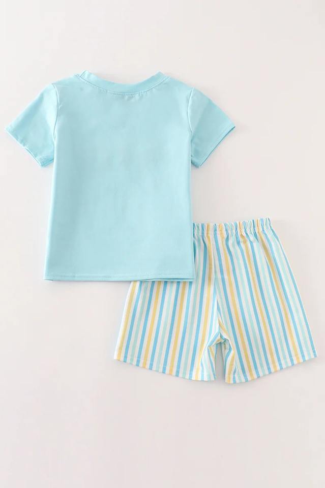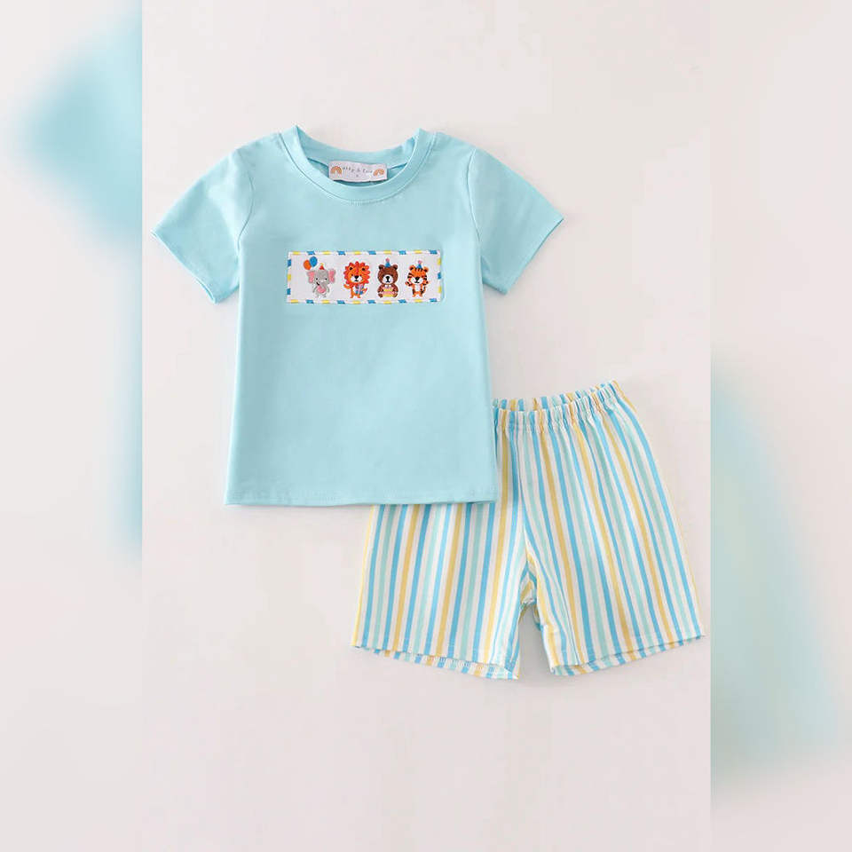 ชุดเสื้อผ้าเด็กผู้ชายผ้าสแปนเด็กซ์/คอตตอน ดีไซน์ปักลายสัตว์สีน้ำเงิน สวมใส่สบาย สไตล์ลำลองสมาร์ท ชุดเด็ก Honeydew สำหรับวันเกิด