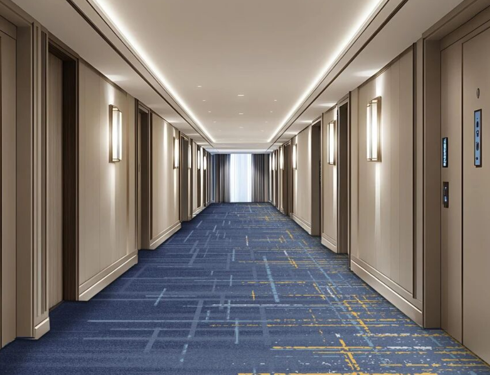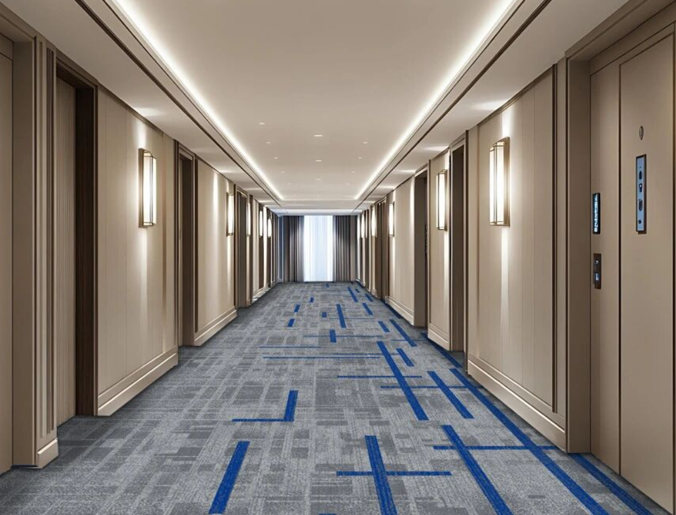 พรมไนลอนพิมพ์ลายถักแบบสบายตา ผลิตด้วยเครื่องจักร ป้องกันคราบสกปรก ต้านเชื้อแบคทีเรีย กันลื่น ป้องกันไฟฟ้าสถิตย์ สำหรับห้องประชุม