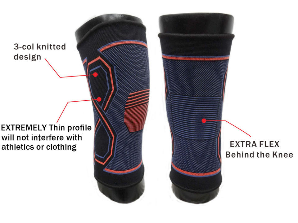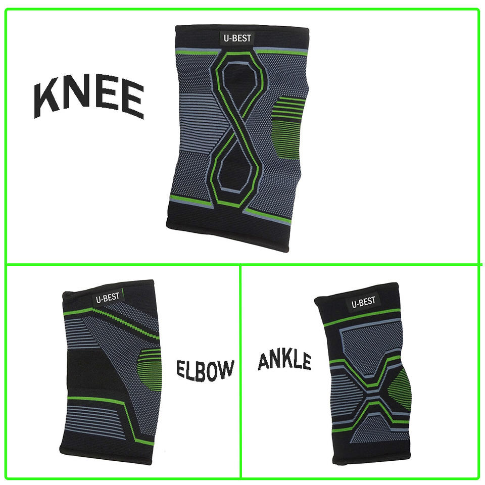 สนับเข่าและแผ่นรองเข่าที่สวมใส่สบาย ระบายอากาศได้ดี ผลิตจากไนลอน ยาง และสแปนเด็กซ์