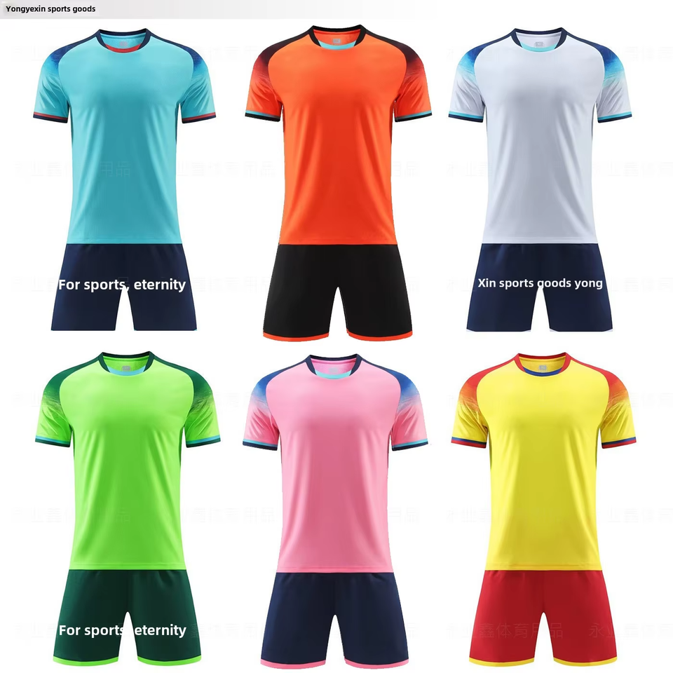 ชุดเสื้อทีมฟุตบอลแขนสั้นระบายอากาศได้ดีใส่สบายสำหรับนักเรียนและผู้ใหญ่ชุดฝึกกีฬา