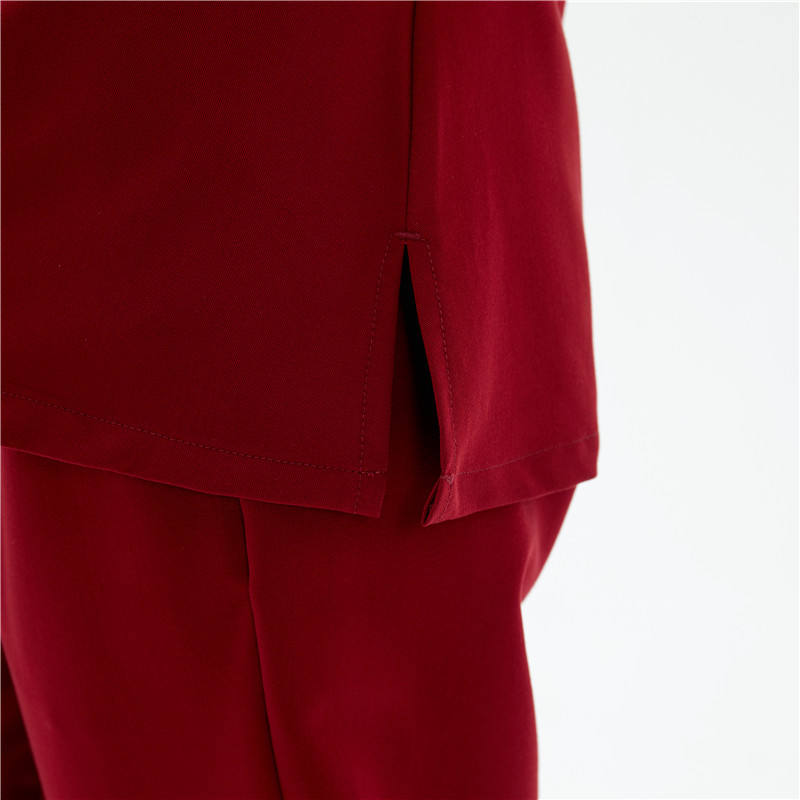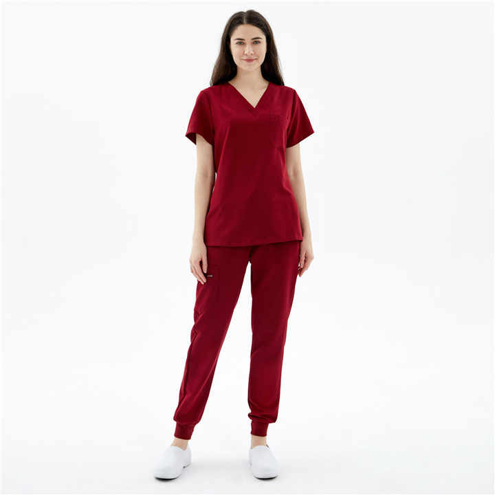 เสื้อสครับคอวีผ้าสแปนเด็กซ์ไซส์ใหญ่ ใส่สบาย เป็นมิตรกับสิ่งแวดล้อม เนื้อผ้าทอระบายอากาศได้ดี เหมาะสำหรับชุดยูนิฟอร์มพยาบาล