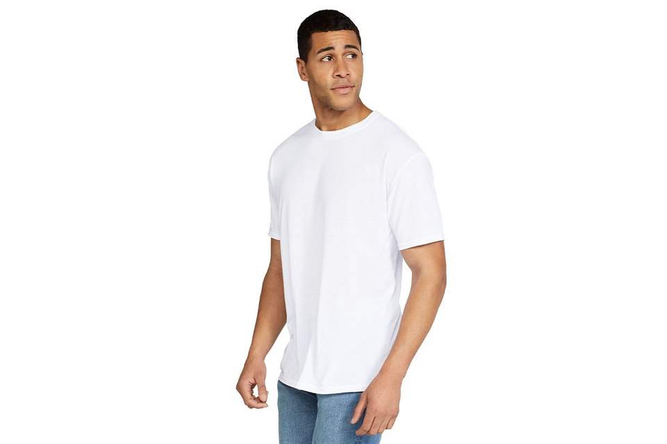 เสื้อยืดผ้าโพลีเอสเตอร์สวมใส่สบายสำหรับผู้ชายสีขาวดีไซน์ไม่เหมือนใคร