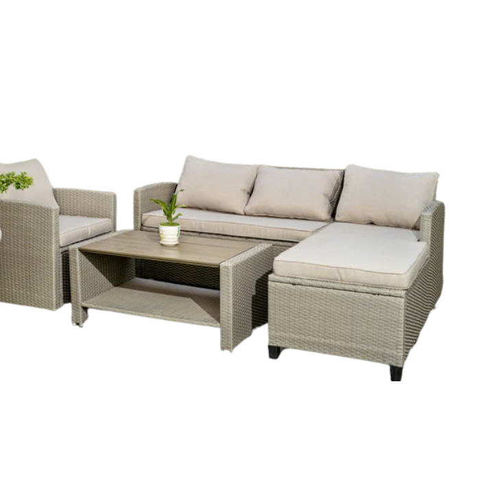 ชุดเฟอร์นิเจอร์รับประทานอาหารกลางแจ้งทันสมัย สัมผัสนุ่มสบาย โต๊ะ เก้าอี้ ม้านั่ง โซฟา ชุดหวาย/ไม้สาน สำหรับห้องนั่งเล่น มอร่า เบนช์ ฟู ลินห์