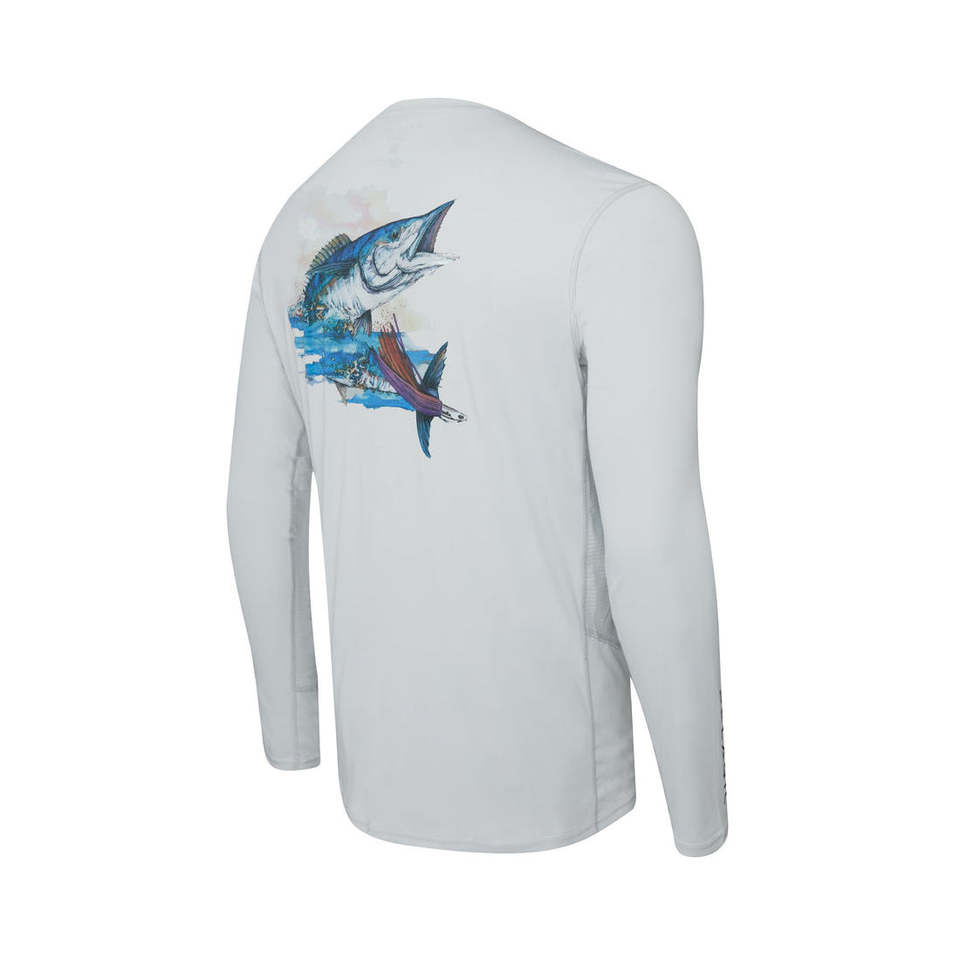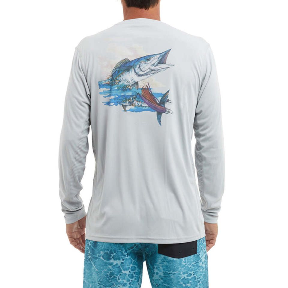 เสื้อตกปลาผู้ชายแบบสปอร์ต ทรงพอดีตัว คุณภาพสูง เป็นมิตรกับสิ่งแวดล้อม ผลิตตามแบบ OEM ราคาสมเหตุสมผล แห้งเร็ว แขนยาว ลายพิมพ์แบบซับลิเมชั่น