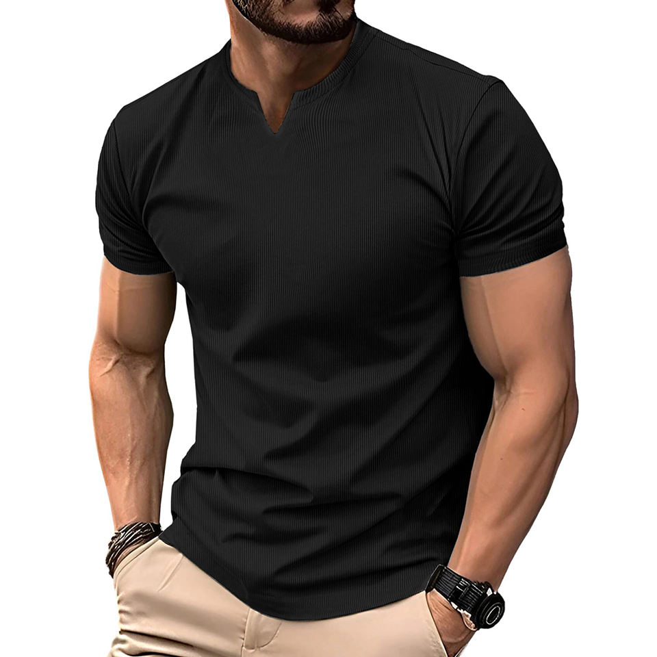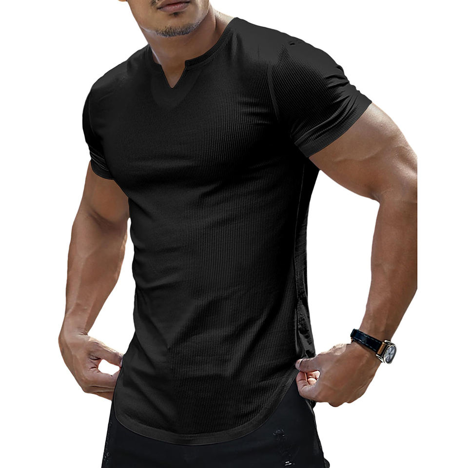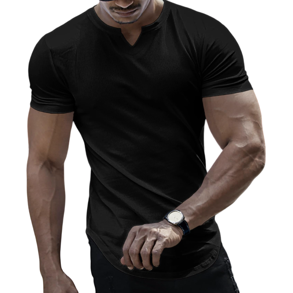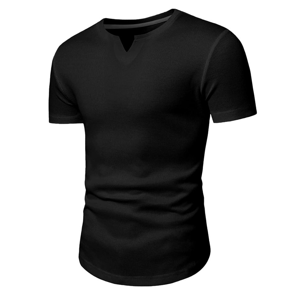 เสื้อยืดผู้ชายทรงพอดีตัวใส่สบายเสื้อยืดผ้ายืดคอกลมสีพื้นสำหรับผู้ชาย
