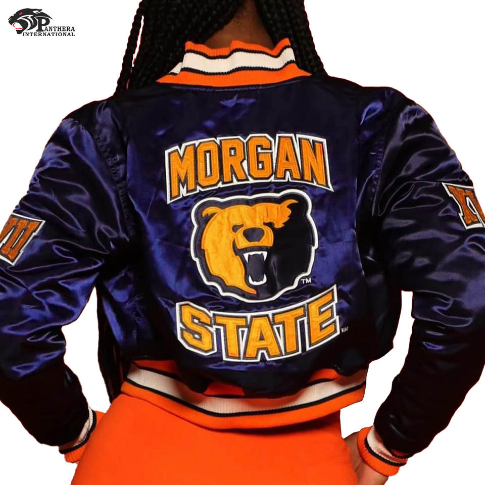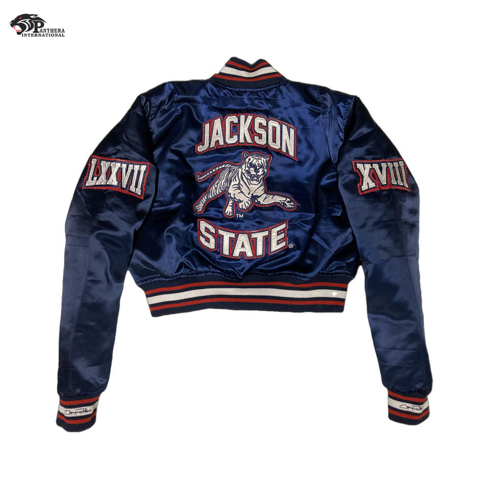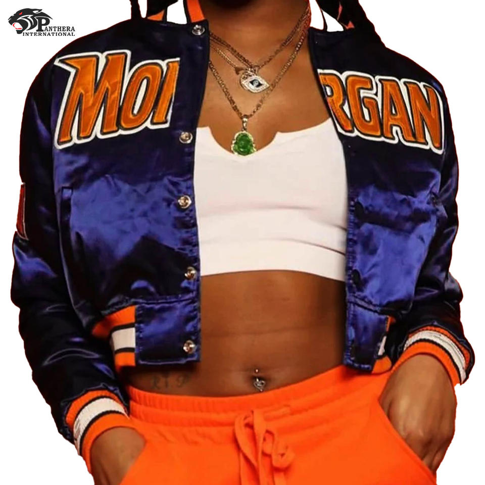 แจ็กเก็ตเบสบอลผ้าซาตินปิดด้วยกระดุมกระดุมแป๊กสวมใส่สบายสำหรับโรงเรียนและมหาวิทยาลัย