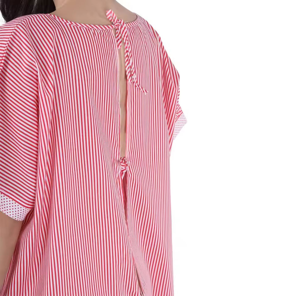 ชุดผู้ป่วยแบบสบาย ใช้ได้ทั้งชายและหญิง ผลิตจากผ้าฝ้าย 100% หรือผ้าผสมโพลีเอสเตอร์ พร้อมกระดุมด้านหลัง สำหรับใช้ทางการแพทย์