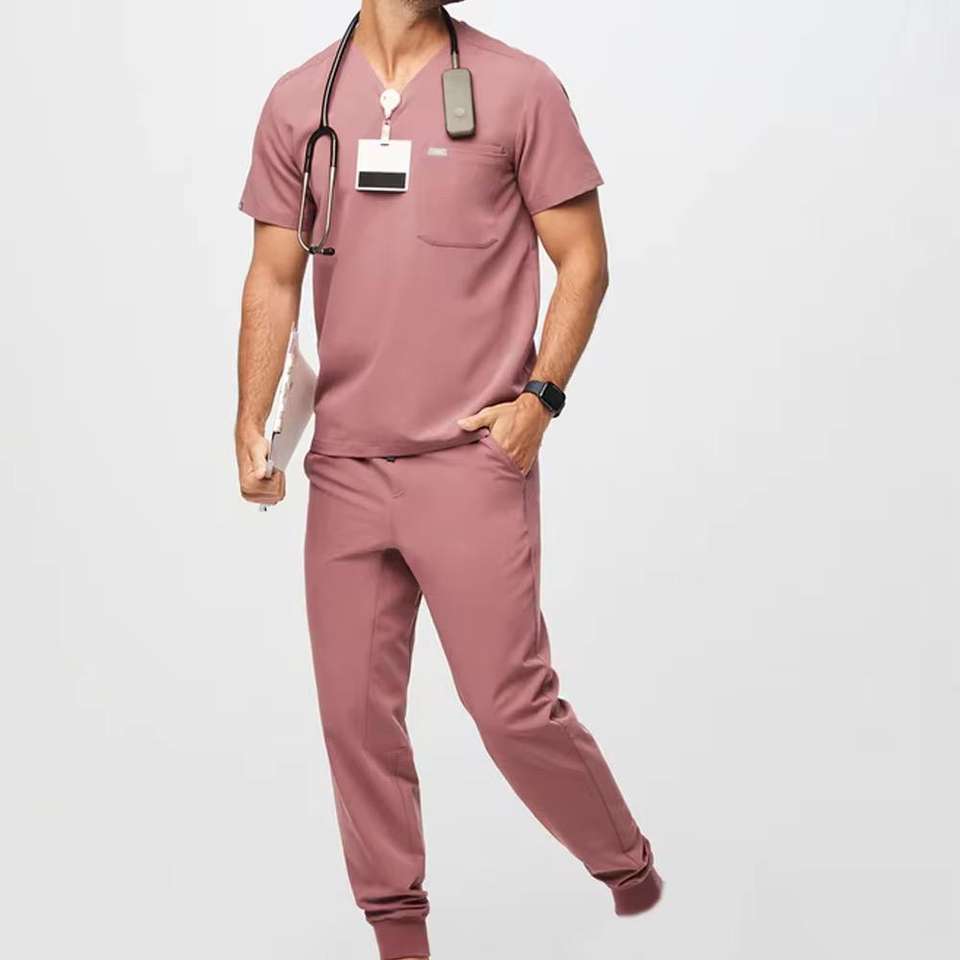 ชุดสครับแพทย์ผู้ชายผ้าทอใส่สบายสำหรับโรงพยาบาล เหมาะสำหรับฤดูร้อน สีตามสั่ง ผ้ายืดสแปนเด็กซ์