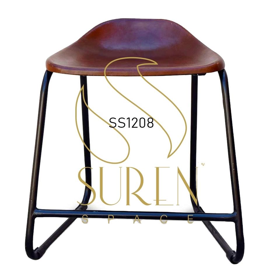 ฐานโลหะหนังดีไซน์เก้าอี้อินเดียใส่สบายออกแบบเฟอร์นิเจอร์สไตล์อุตสาหกรรมสำหรับคาเฟ่บิสโทรและสำหรับเด็กนั่ง