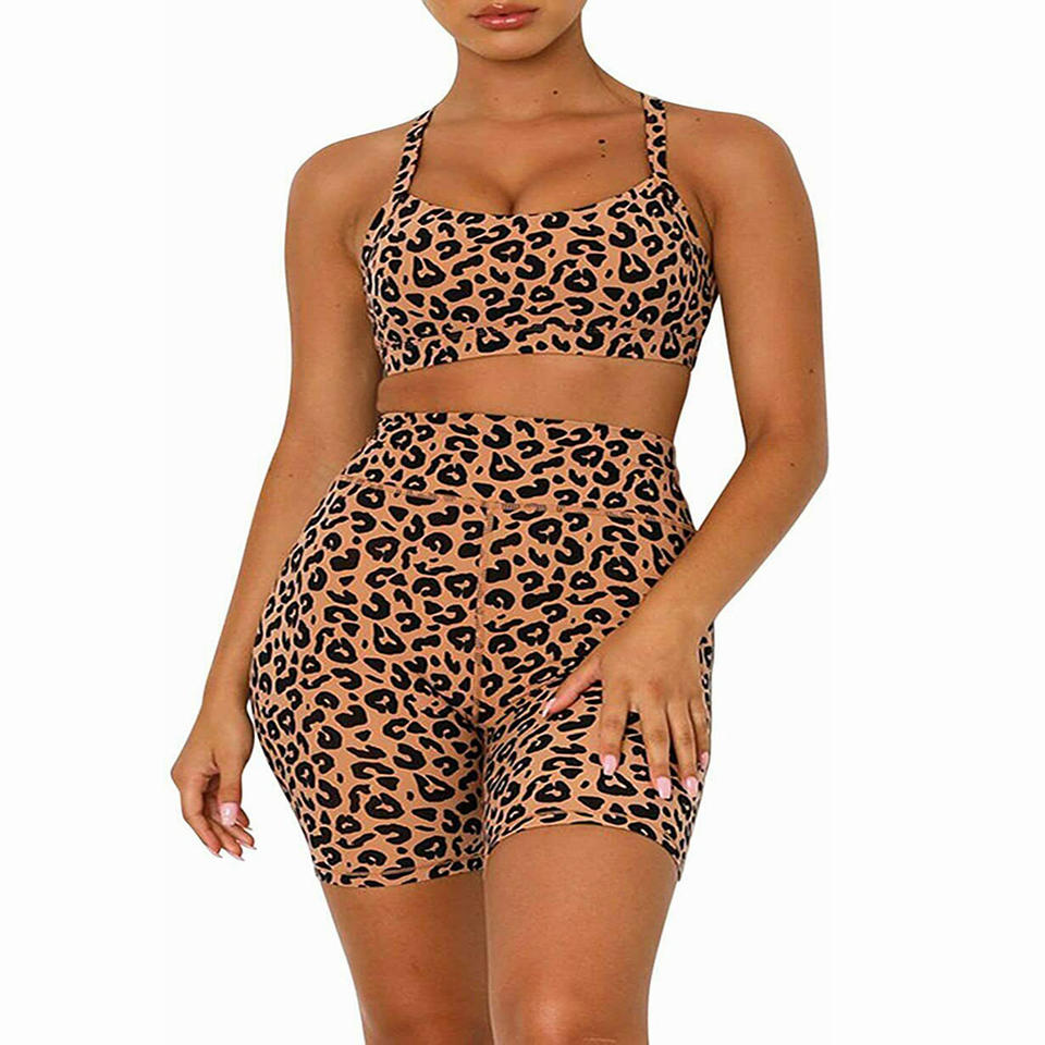 ชุดโยคะฤดูร้อนพิมพ์ลายแฟนซีสำหรับผู้หญิง,ชุดเสื้อเอวลอยพร้อมกางเกงขาสั้นสวมใส่สบาย