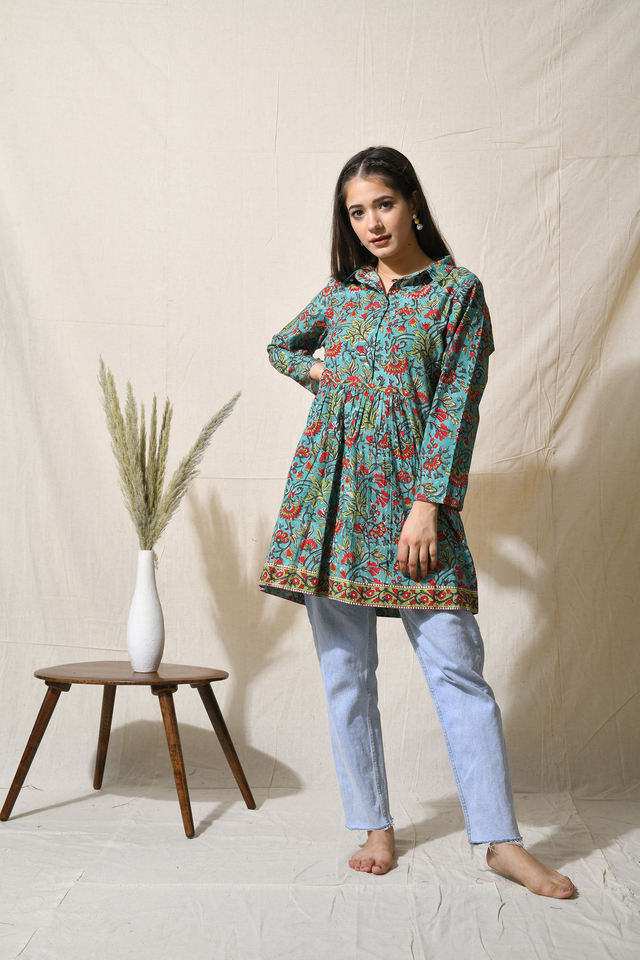 เสื้อผ้าฝ้ายลายดอกไม้สไตล์โบฮีเมียนสำหรับผู้หญิงใส่สบายในฤดูร้อนดีไซน์จีบน่ารักเหมาะสำหรับใส่ในชีวิตประจำวัน