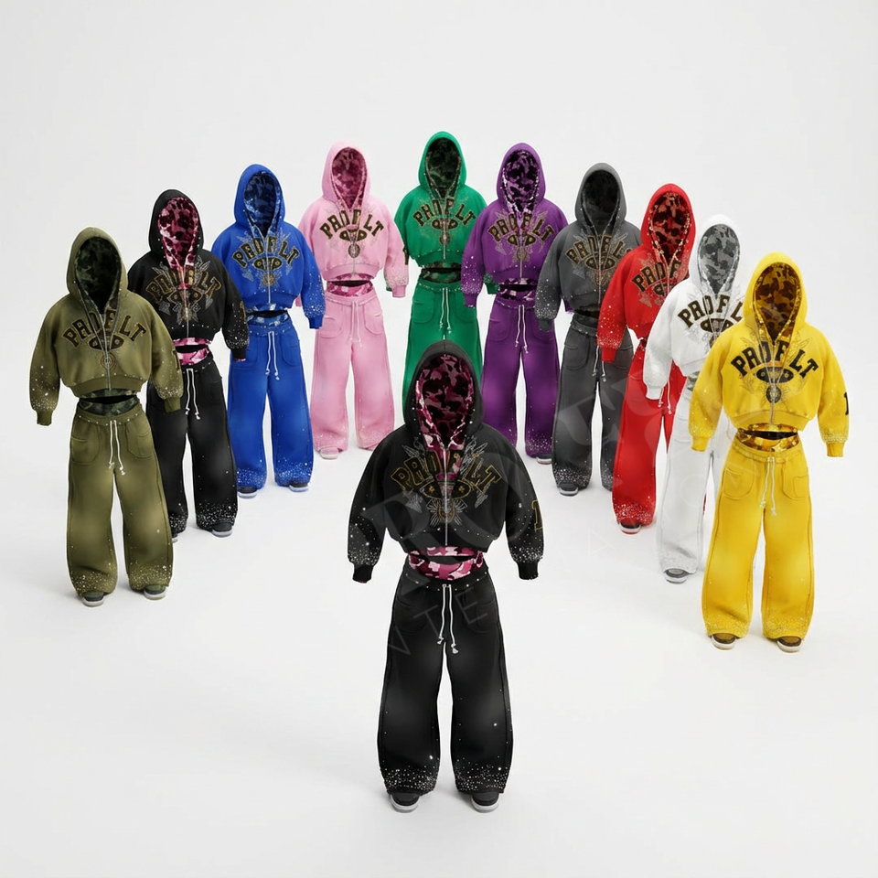 ชุดวอร์มสไตล์ล่าสุด ดีไซน์สบายๆ พร้อมลายดาวสีชมพู ฮู้ดมีซิปและกางเกงขายาวทรงโอเวอร์ไซส์