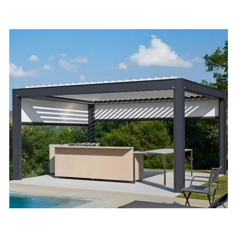 ศาลาพักผ่อนกันแดด อลูมิเนียมเคลือบผง ดีไซน์ทันสมัย ทนทานต่อสภาพอากาศ กันน้ำ ติดตั้งง่าย สวยงามเป็นธรรมชาติ