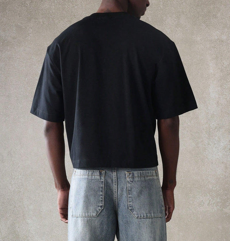 เสื้อยืดทรงบ็อกซี่ผู้ชายใส่สบาย สีพื้น ดีไซน์โลโก้ตามสั่ง เสื้อยืดพิมพ์ลายทรงหลวม รับผลิตเสื้อยืดผู้ชายแบบ OEM แบรนด์ส่วนตัว