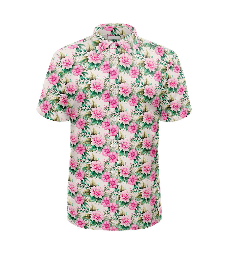 เสื้อกอล์ฟผู้ชายลายดอกไม้ แขนสั้น ติดกระดุม ผ้าระบายอากาศดี ดีไซน์แบบฮาวาย เหมาะสำหรับสนามกอล์ฟ