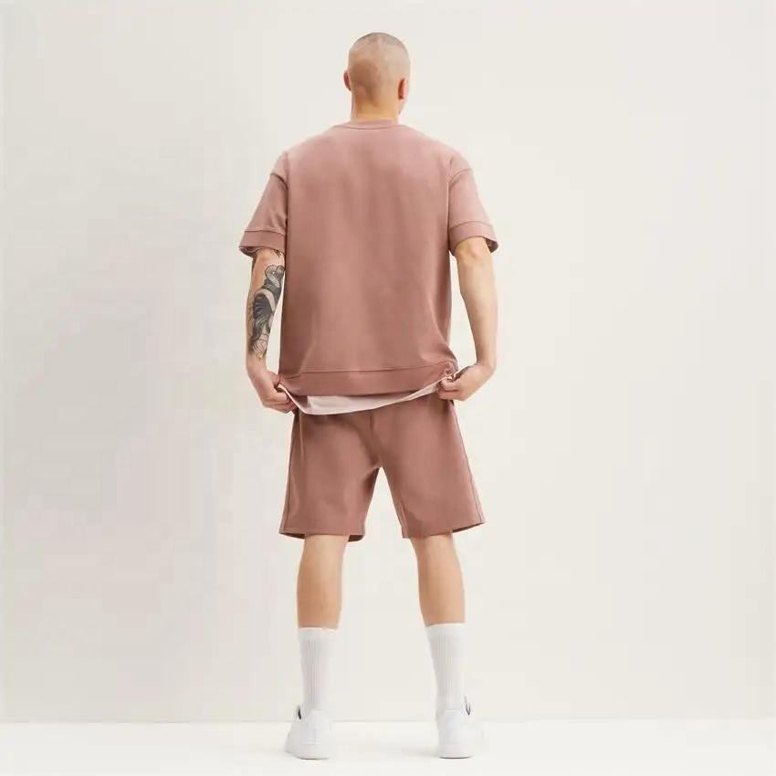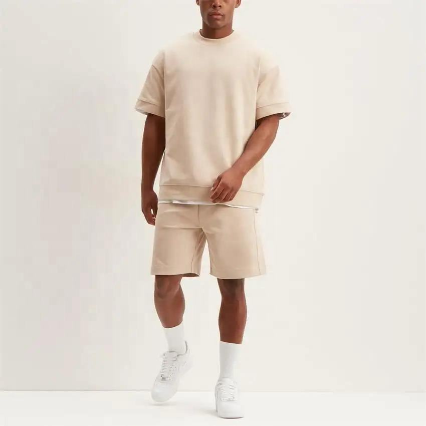 ชุดเสื้อยืดและกางเกงขาสั้นสำหรับผู้ชายสวมใส่สบายชุดฤดูร้อนสีพื้นแบบปรับแต่งได้