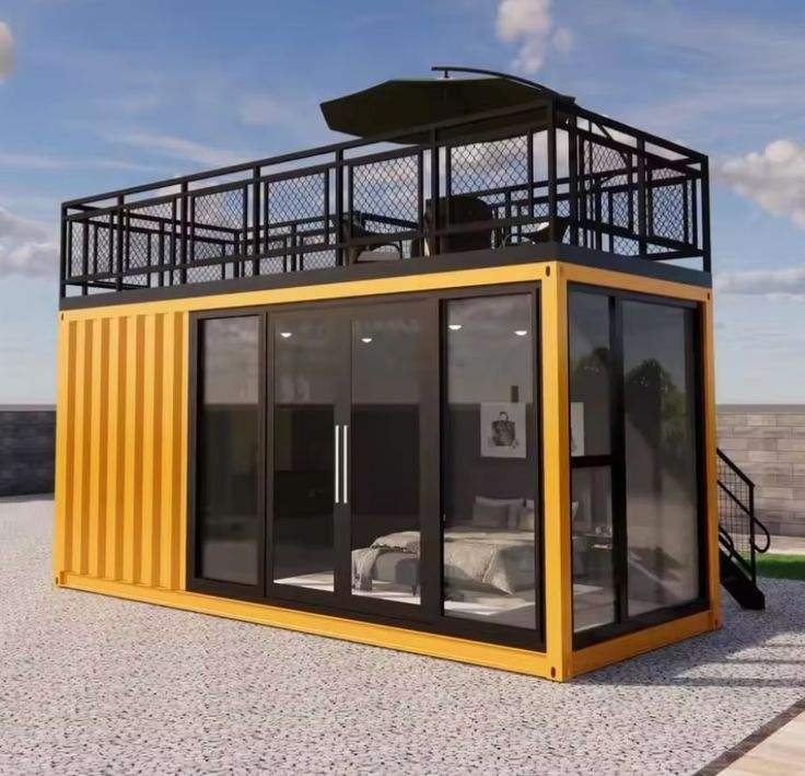 บ้านคอนเทนเนอร์ทันสมัยที่สะดวกสบายสำหรับการแกลมปิ้ง ห้องพักสำเร็จรูปฉนวนกันความร้อนและทนทานต่อสภาพอากาศ แผงแซนวิชสำหรับห้องนั่งเล่นสุดหรู