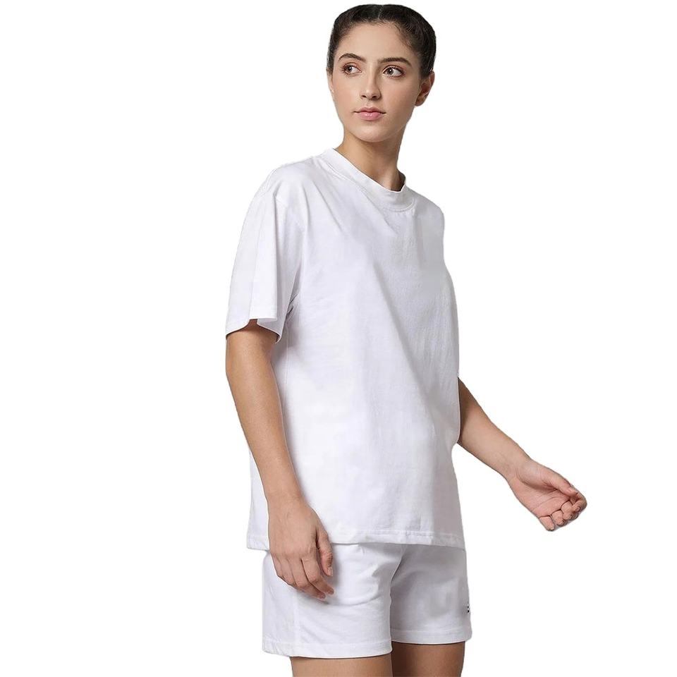 ชุดเซ็ตคู่สำหรับผู้หญิง ผ้าโพลีเอสเตอร์ แห้งเร็ว น้ำหนักเบา สวมใส่สบาย เสื้อยืดคอกว้างแขนสั้นและกางเกงขาสั้น สำหรับใส่กิจกรรมกลางแจ้ง