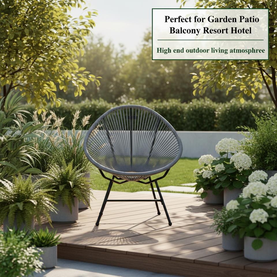 เก้าอี้หวายสำหรับสวนที่นั่งสบาย เหมาะสำหรับเฟอร์นิเจอร์ระเบียงกลางแจ้ง ทนทานต่อสภาพอากาศ ผลิตจากหวาย PE ผู้ผลิตจากโรงงาน OEM