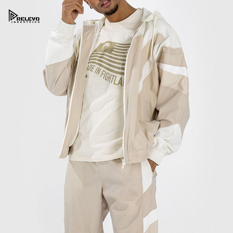 ชุดวอร์มกันลมแบบมีฮู้ดสำหรับฤดูหนาว ขนาดสวมใส่สบาย แบบลำลอง สำหรับผู้ชายและผู้หญิง สองชิ้น ขายส่ง ปี 2026 กันลม ระบายอากาศได้ดี