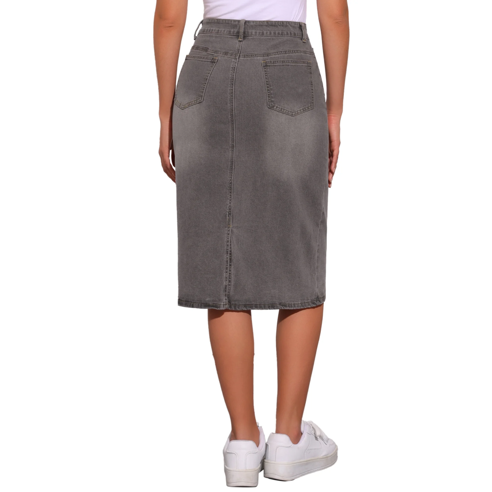 กระโปรงยีนส์สีทึบใส่สบายสำหรับผู้หญิงกระโปรงยีนส์ฟอกไซส์ใหญ่พิเศษออกแบบได้ตามต้องการ