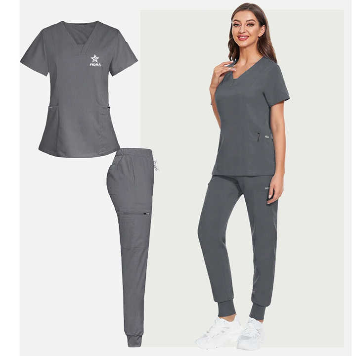 ชุดสครับโรงพยาบาลผ้าฝ้ายสแปนเด็กซ์ผ้าทอลายทแยงสวมใส่สบายสำหรับผู้ชายผู้หญิงพยาบาล