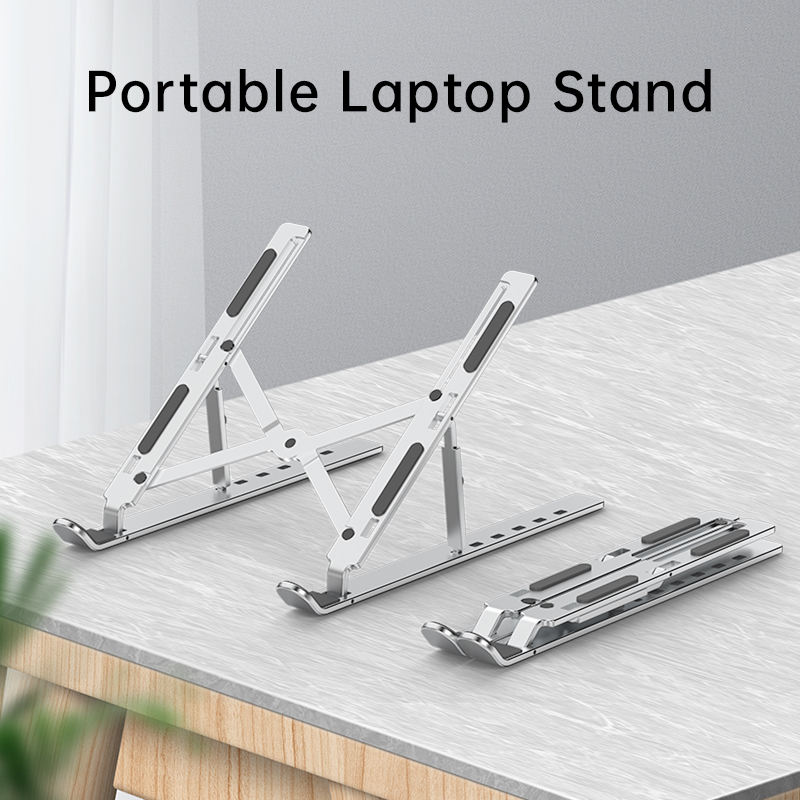 Comfortable Stand Foldable Height-Adjustable Aluminum Folding Portable Adjustable Desktop Stand Base for Laptops Tablets