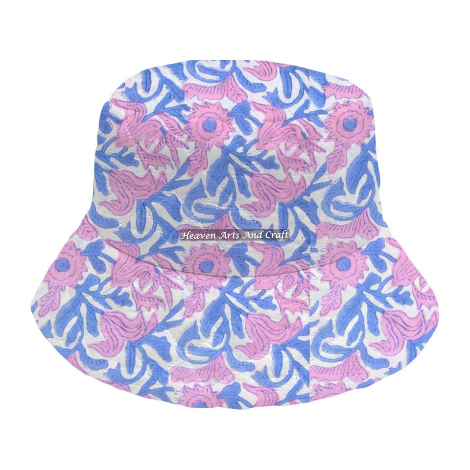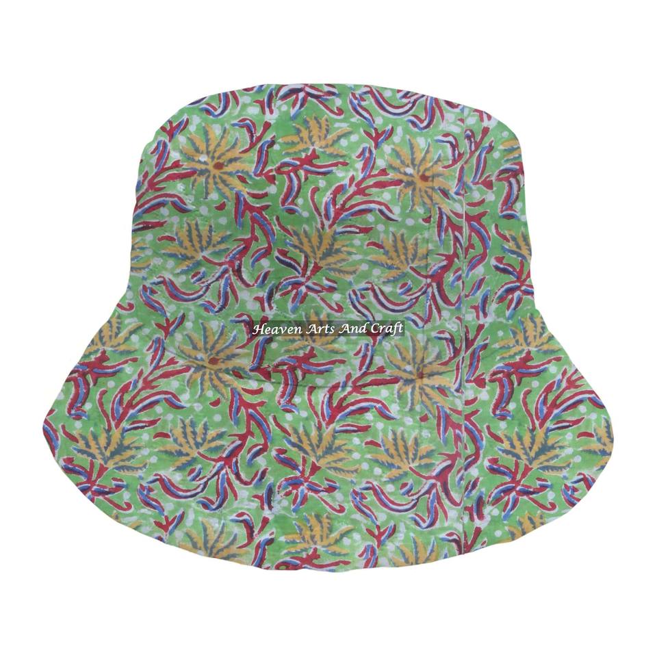 หมวกบักเก็ตผ้าฝ้ายพิมพ์ลายด้วยมือ สวมใส่สบาย ทันสมัย แฟชั่นแบบกำหนดเอง หมวกบักเก็ตทรงชาวประมงบุผ้าอุ่นๆ