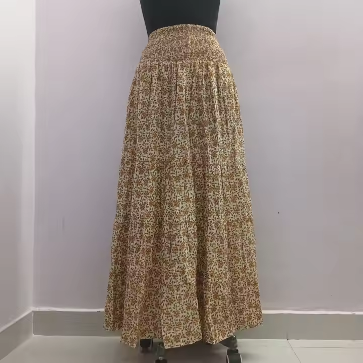 กระโปรงยาวผ้าฝ้ายพิมพ์ลายสกรีนเอวสูบบุหรี่