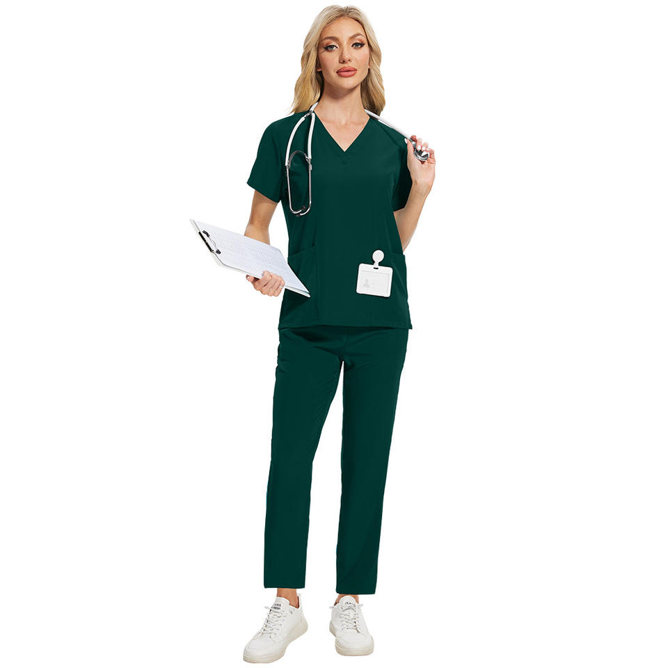 ชุดสครับชุดยูนิฟอร์มทางการแพทย์ใส่สบายสำหรับผู้หญิงผู้ชายชุดขัดตรงคอวีสำหรับร้านเสริมสวยคลินิกขายส่งปรับแต่งแบรนด์ได้
