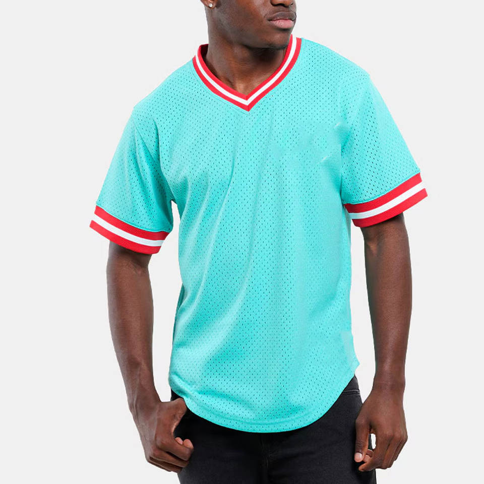 เสื้อกีฬาผ้าตาข่ายคอวีผ้ายืดหยุ่นได้เข้ารูปเสื้อกีฬาคอวีกันเหงื่อเสื้อทีมตาข่ายคอวี