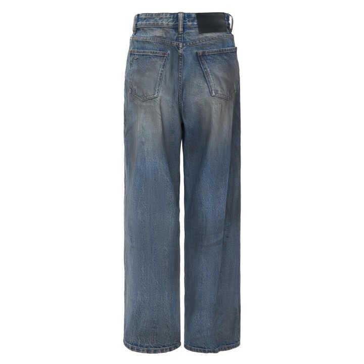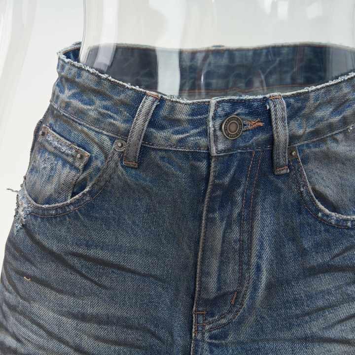 กางเกงยีนส์ผู้หญิงใส่สบายกางเกงยีนส์เอวสูงเอวสูงมีกระเป๋าขนาดใหญ่สีฟ้า2025ซักได้