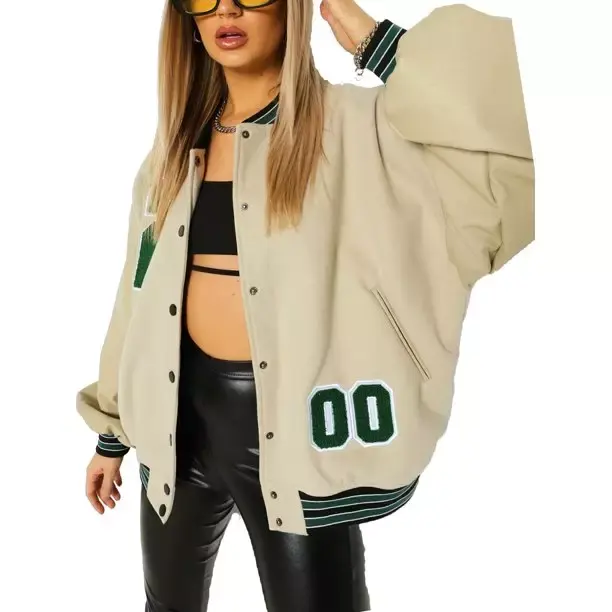 แจ็คเก็ตวาร์ซิตี้ผู้หญิงใส่สบาย แจ็คเก็ตเบสบอลทรงบอมเบอร์ทันสมัย เสื้อแจ็คเก็ตเลตเตอร์แมนสุดเทรนดี้ แฟชั่นสตรีทแวร์ลำลอง