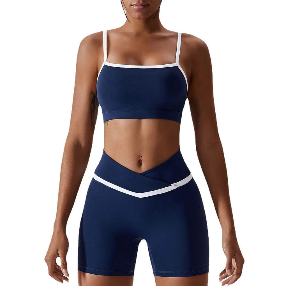ชุดโยคะเสื้อและกางเกงขาสั้นสำหรับผู้หญิง สวมใส่สบาย เหมาะสำหรับออกกำลังกายทุกวัน ชุด 2 ชิ้น