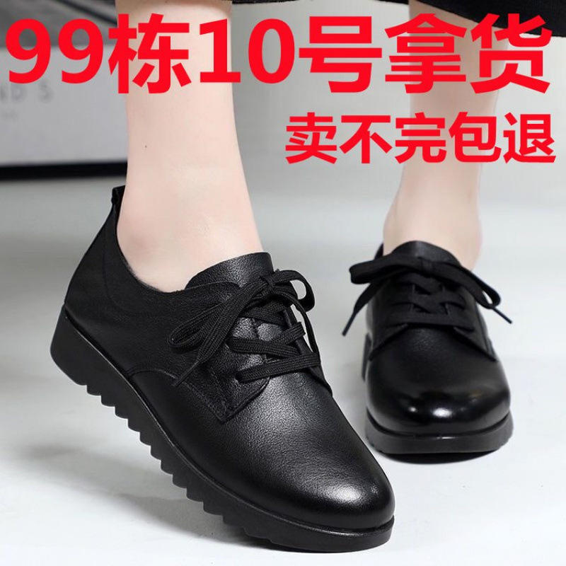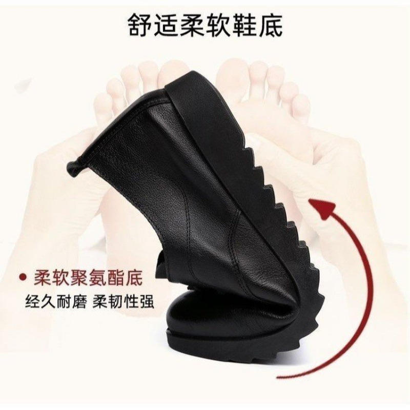 รองเท้าหนังแท้ผู้หญิง สวมใส่สบาย พื้นนุ่ม ส้นหนา ดีไซน์ผูกเชือก สำหรับฤดูใบไม้ผลิและฤดูใบไม้ร่วง มีไซส์ใหญ่