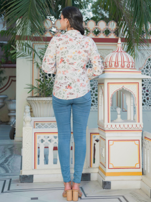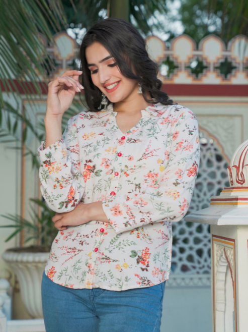 เสื้อเชิ้ตผู้หญิงพิมพ์ลายดอกไม้หลากสี ผ้าเรยอน สวมใส่สบาย มีปกเสื้อและแขนเสื้อแบบปกติ เหมาะสำหรับใส่ทำงานแบบลำลอง